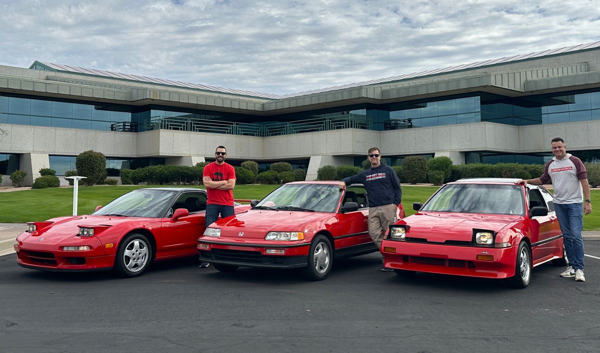 Greg membawa CRX jarak tempuh rendahnya ke pertemuan informal “mobil serba merah” di mana saya memamerkan Acura NSX 1992 saya dan teman saya Eric memamerkan Acura Integra 1987 yang ditingkatkan Mugen miliknya. Bahkan di bawah langit mendung, ketiganya tampak menarik perhatian – dan kita pasti setuju bahwa CRX, Integra, dan NSX mewakili apa yang banyak orang anggap sebagai mobil “era keemasan” Honda.