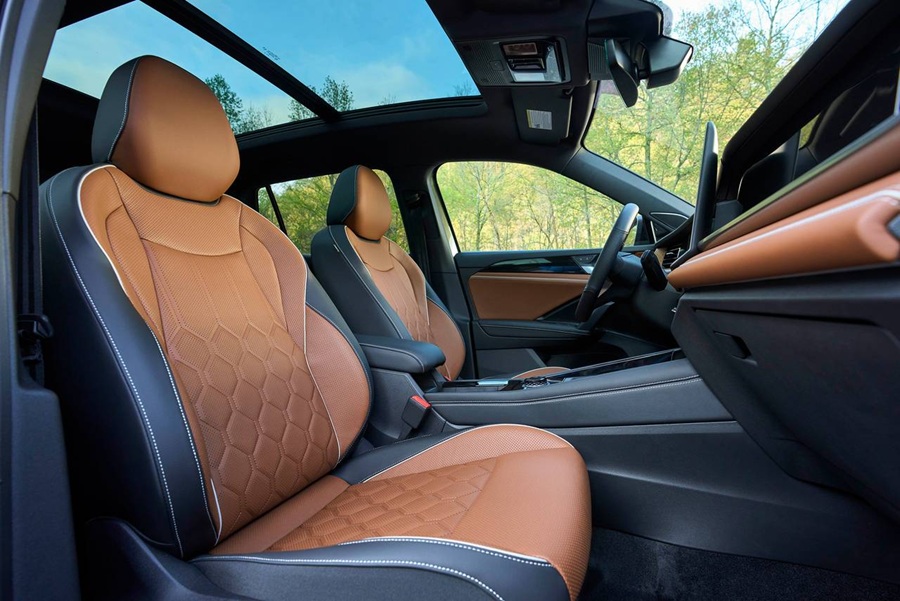 Desain dua warna, detail kayu, dan material lembut menciptakan suasana menawan, dengan ruangan selebar udara (ruang kepala dan rak lebih dari 40 inci), termasuk untuk penumpang lain.